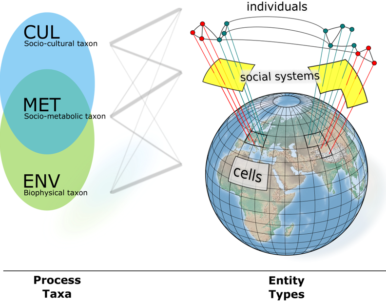 Flexibly compose biophysical, socio-metabolic, and sociocultural processes involving different entities.
