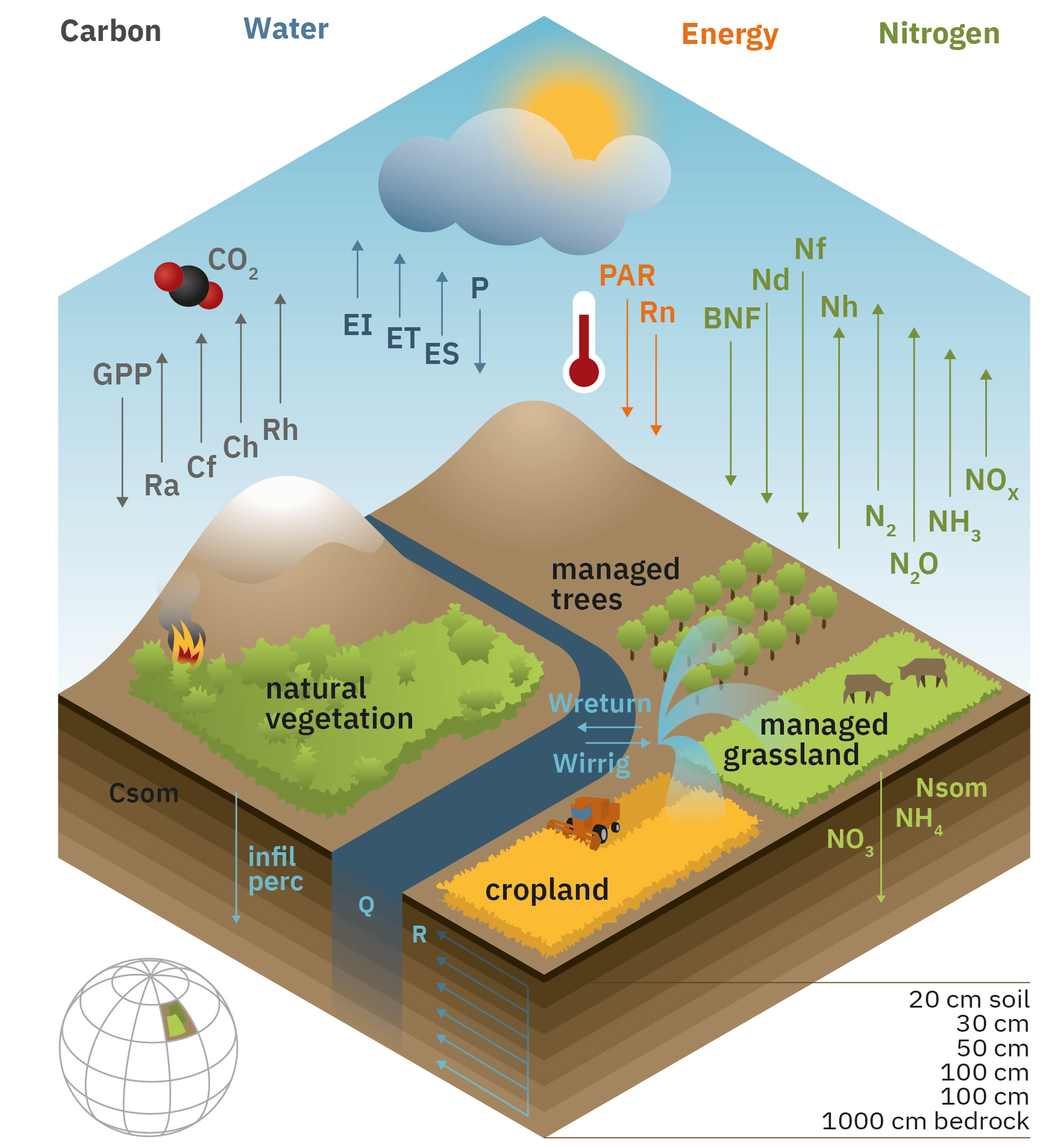 carbon, nitrogen, water and energy cycles in conjunction with the